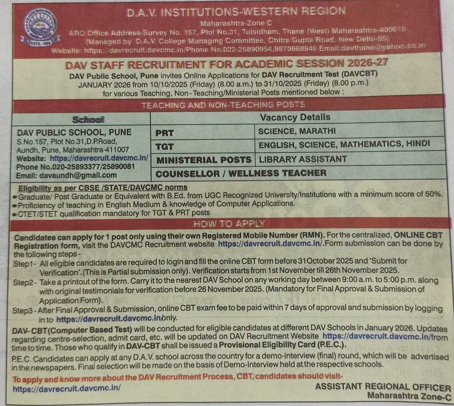 DAV Public School, Aundh S.NO.157, Plot No.31, D.P. Road Aundh, Pune, Maharashtra-411007 Telephone: 020 25890081/25893377 E-mail Id: [email protected] Website: https://davaundhpune.org